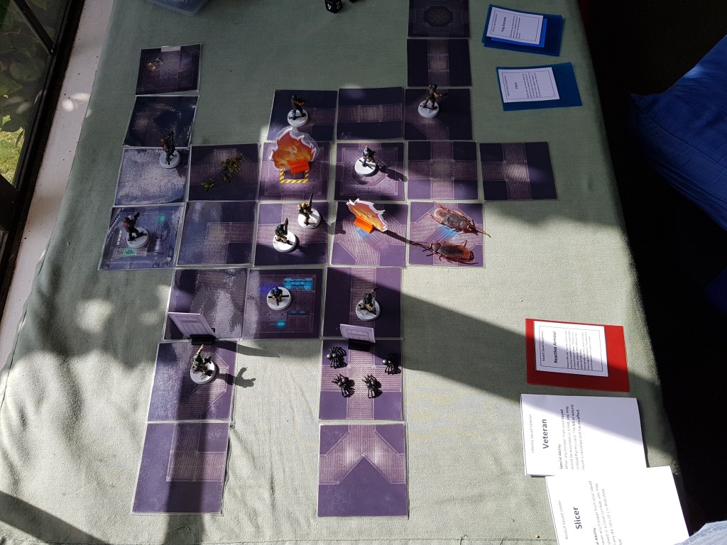 First up, the ‘feel’ of the game has changed a bit. Close Encounters feels fast and fluid, like a quick-moving skirmish. Some combinations of the expansion content make it feel more like a battle than a skirmish, though – the interactions between the bugs and the troopers feel more constant, as if the sides are trading heavy blows, slamming back and forth as the game progresses. I’m not sure how I feel about this. There’s nothing wrong with the occasional pitched battle, and I don’t want to jump to conclusions. At the same time, though, if this keeps on happening I may have to do something about it. I don’t want the game to turn into a slog.