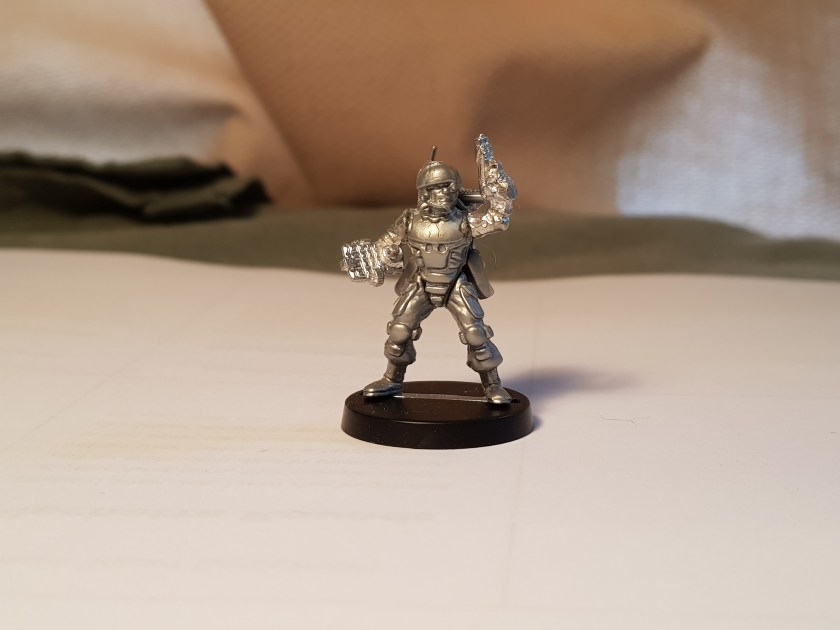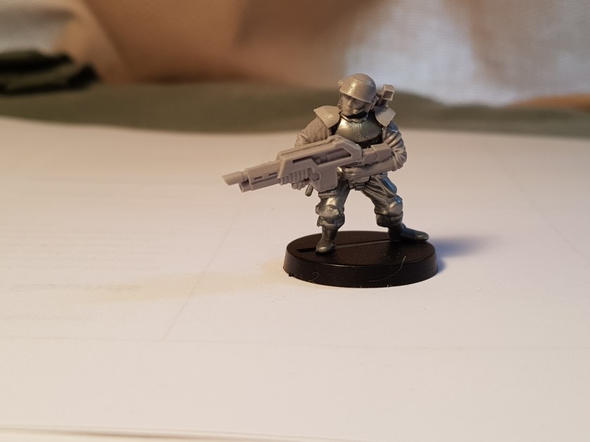 The Colonial Marine is the conversion that I like most at this stage. He’s ready for painting, but even without that I think he looks good. Now, the conversion isn’t perfect – the arms are made for figures with a beefier build than these EM4 plastic figures, but that isn’t really too noticeable and the armour plates and weapon conceal the imperfection.