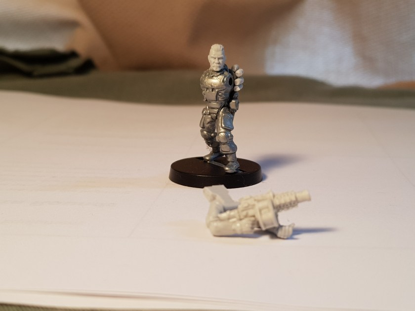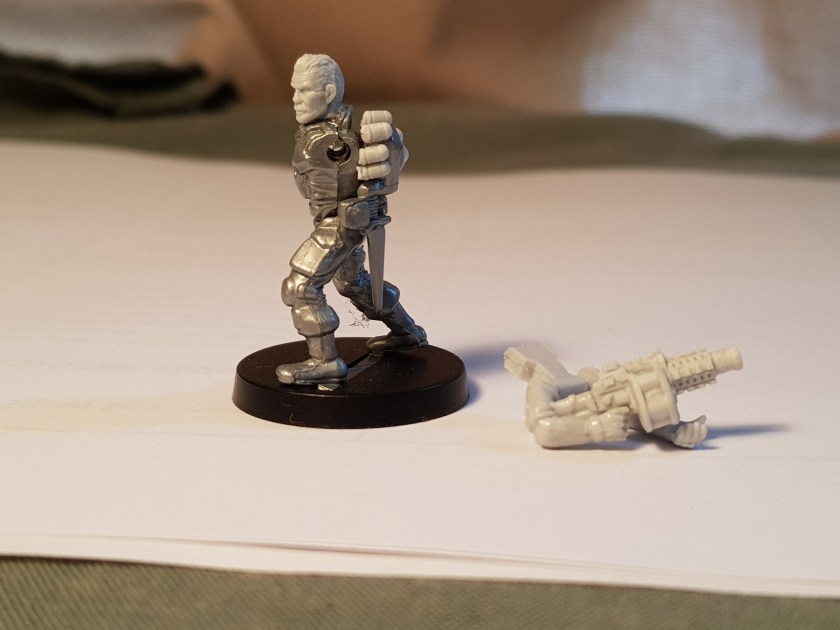 The grenade launcher conversion is going okay, but there’s still a fair bit of work to do on it. The issue is that the weapon didn’t fit nicely with the arms, so I couldn’t assemble them as a single module. Swapping the head and adding some spare grenades to the backpack went fine, though, so my plan here is to paint it all separately and then assemble the bits. I think this conversion will look good, but there’s still some work to do.
