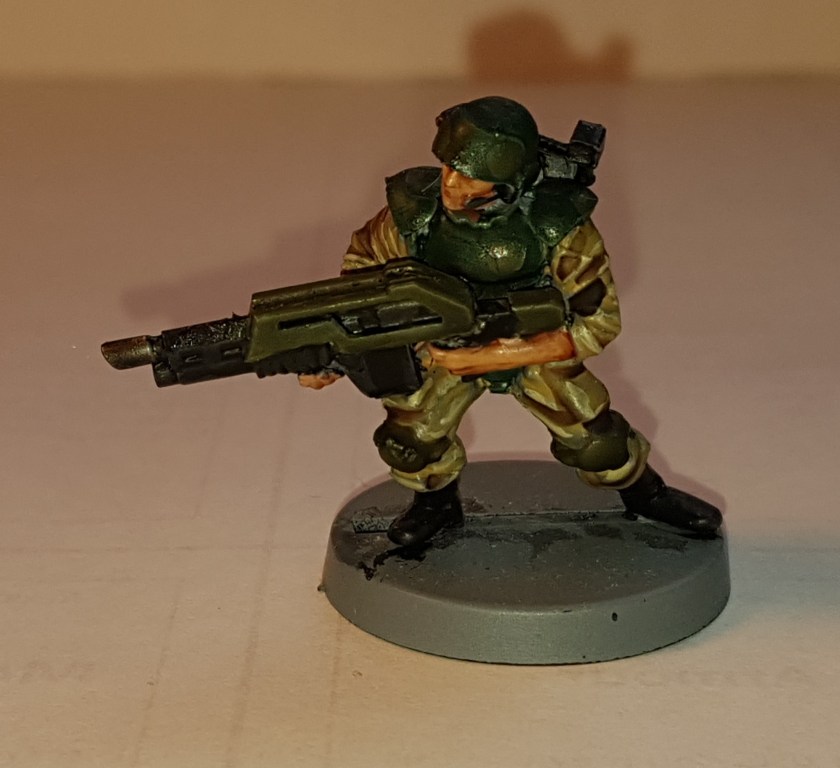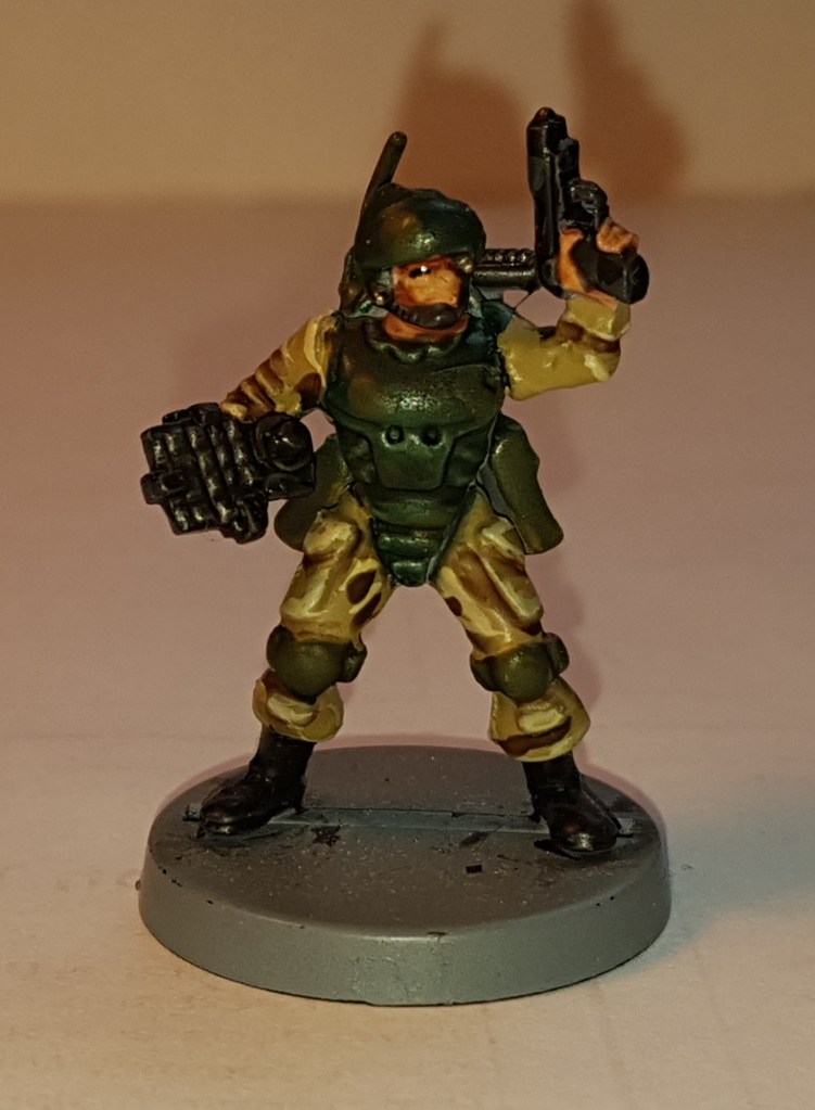 Another figure which turned out very well. All the conversion parts here are from Mad Robot, and although they look good on their intended figures they’re noticeably too big for the EM4 figures I was converting. Thankfully it isn’t obvious at gaming distances, and this guy can be tasked with bug-hunting duties safely… or as safely as that job gets, anyway.